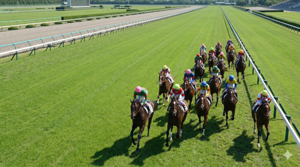 前述の通り、内枠の最大の特徴はコーナーを回る際の走行距離を最小限に抑えられる点にありますが、これをさらに深く分析すると、単なる距離の損得以上の重要な要素が見えてきます。内枠に入った馬は、スタート直後から内ラチ(柵)沿いのいわゆる「経済コース」を確保しやすいため、無駄な体力を使わずにレースを進められる可能性が飛躍的に高まります。特に、開催の初めである「開幕週」や、仮柵を移動して傷んだ部分をカバーした直後のレースでは、内側の芝状態が極めて良好であるため、まるで舗装された道路を走るかのような「グリーンベルト」の恩恵を最大限に受けることができます。