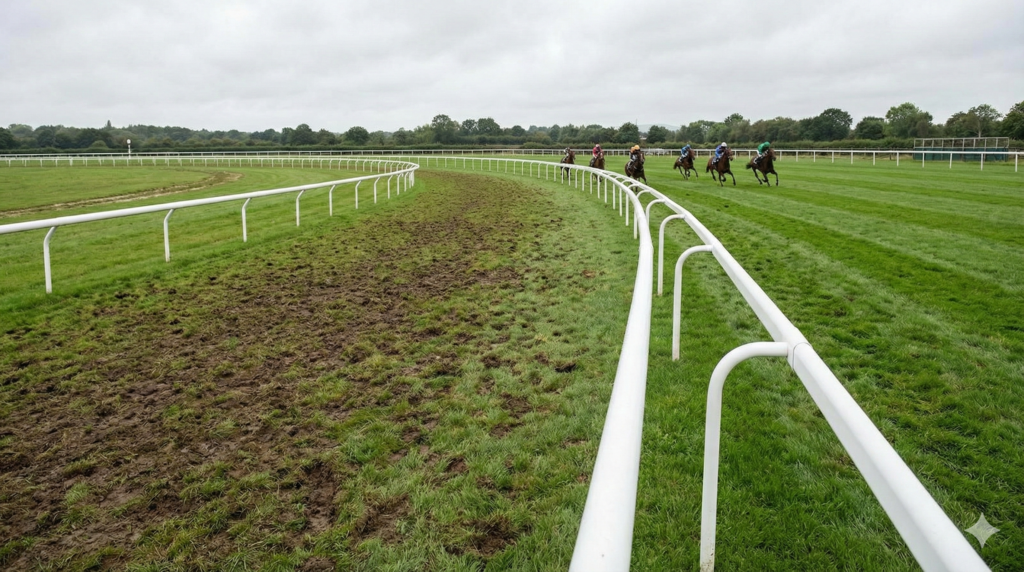 さらに、天候や開催時期による馬場状態(トラックバイアス)の変化も、内枠の価値を大きく左右します。開催が進んで多くの馬が通った内側の芝は、蹄で掘り返されてボコボコに荒れてきます。また、雨が降ると水はけの悪い内側から順にぬかるんでいく傾向があります。このような状況下では、騎手はスタミナを削ぐ荒れた内側を嫌い、あえて状態の良い外側を選んで走らせるようになります。