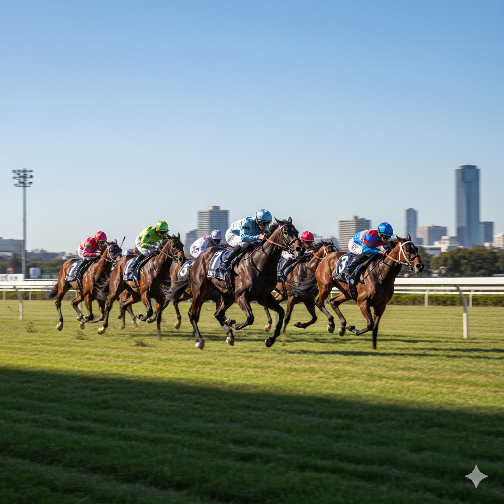 また、広大なコースと約525.9メートルに及ぶ長い直線が特徴です。このコースレイアウトと、芝由来の高い反発力が組み合わさることで、出走馬には持続的なトップスピード能力が厳しく問われます。中途半端なスピードでは、長い直線で後続に交わされてしまいます。