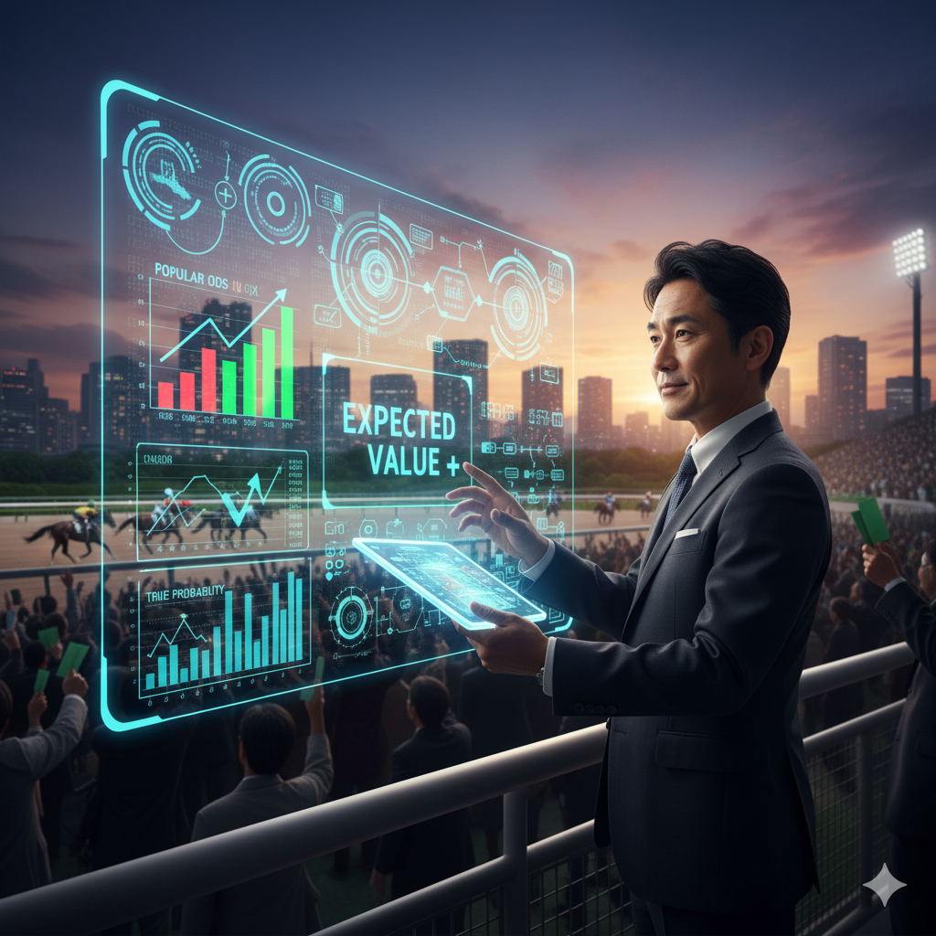 多くの方は、馬券を検討する際に「どの馬が3着以内に入るか?」という問いからスタートします。もちろん、これは予想の基本です。しかし、プロフェッショナルな思考はここから一歩進みます。彼らの問いは、「その馬が3着以内に入る“本当の確率”が、現在のオッズが示す“建前の確率”よりも高いか?」です。